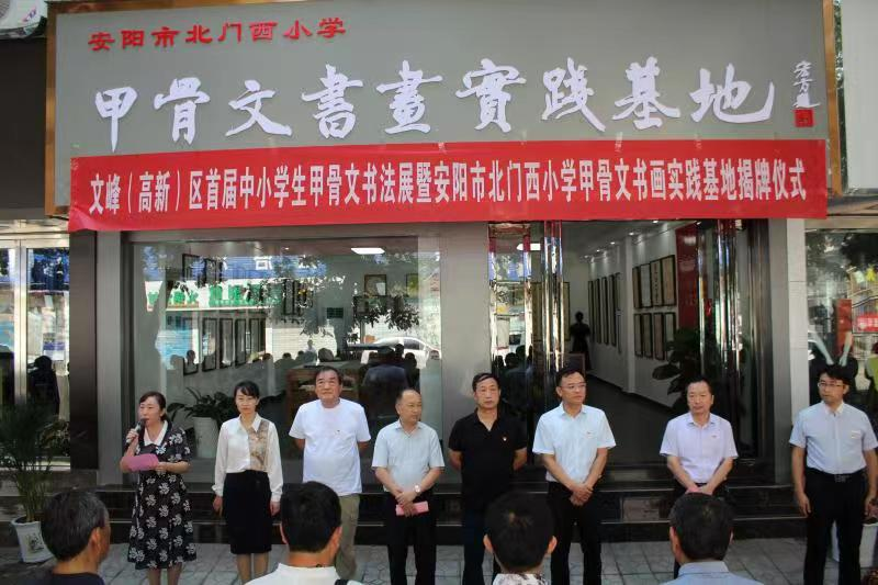 為貫徹落實習(xí)近平總書記致甲骨文發(fā)現(xiàn)和研究120周年賀信精神,喜迎建黨一百周年華誕,引領(lǐng)“紅領(lǐng)巾心向黨”,讓以甲骨文為代表的優(yōu)秀傳統(tǒng)文化在青少年學(xué)生心中生根發(fā)芽,6月29日,安陽市文峰(高新)區(qū)首屆中小學(xué)生甲骨文書法展暨北門西小學(xué)甲骨文書畫實踐基地揭牌儀式成功舉行。