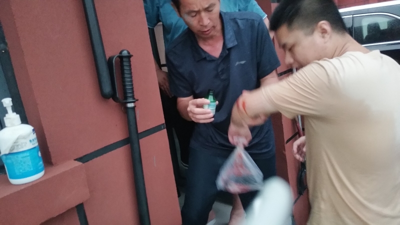 鄭東新區(qū)中州大道小學黨支部書記姚增戧為路人處理傷口