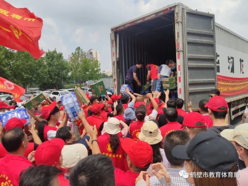 7月24日上午,全國(guó)婦聯(lián)中國(guó)婦女發(fā)展基金會(huì)馳援鶴壁市9輛車約200噸救援物資送達(dá)鶴壁市政府北門(mén),市教育體育局50多名黨員志愿者踴躍參加裝卸工作,大家冒著酷暑和各機(jī)關(guān)單位的志愿者共同把一箱箱大米、方便面、食用油、礦泉水、火腿腸等救援物資,從車上卸下來(lái),再轉(zhuǎn)裝到受災(zāi)地區(qū)的物資接收車上,用實(shí)際行動(dòng)為抗汛救災(zāi)貢獻(xiàn)力量,為災(zāi)區(qū)群眾奉獻(xiàn)愛(ài)心。