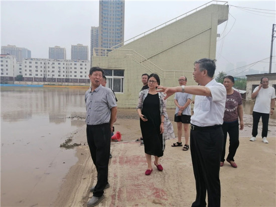 7月21日下午,鄭州工程技術學院黨委書記周春輝、校長盧奎,黨委副書記、工會主席蘇煒現(xiàn)場查看該校英才、金河校區(qū)防汛情況。