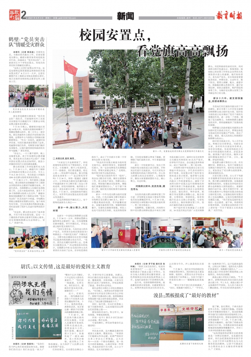 災(zāi)害無情人有情。從7月下旬新鄉(xiāng)市強降雨導(dǎo)致的洪澇災(zāi)害發(fā)生以來,數(shù)萬群眾被轉(zhuǎn)移安置。在被救援被幫助的同時,安置在各學(xué)校的受災(zāi)群眾也積極加入到傳遞愛心、重建家園的行動中來,新鄉(xiāng)市第四中學(xué)、新鄉(xiāng)職業(yè)教育中心等臨時安置點紛紛成立臨時黨支部,讓黨旗在臨時安置點的上空高高飄揚,讓黨員先鋒持續(xù)迸發(fā)模范力量?!拔夷壳耙彩桥R時黨支部的一名志愿者,接下來,我將利用好現(xiàn)有資源,為安置在這里的孩子們上講好每一節(jié)關(guān)于愛國主義的思政課?!眲⒎挤颊f。