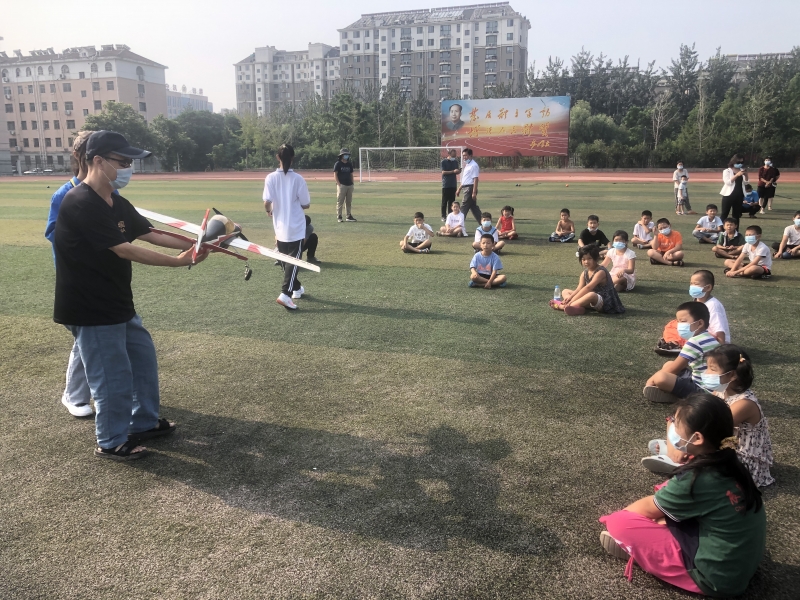 孩子們在操場上起了航模課