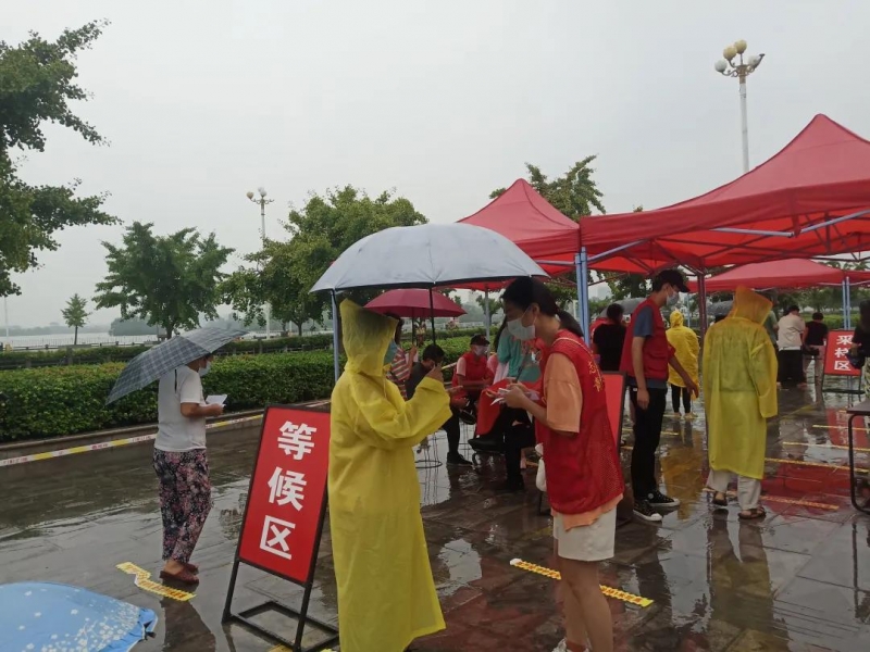 近日,面對(duì)新一輪疫情局部暴發(fā)的態(tài)勢(shì),周口市淮陽區(qū)為嚴(yán)防死守,全民核酸檢測(cè)正式開始。為使核酸檢測(cè)采樣工作有序進(jìn)行,該區(qū)在太昊陵廣場(chǎng)設(shè)置了采集點(diǎn)。在這個(gè)人群隊(duì)伍中,一群身穿“紅馬甲志愿紅”的疫情防控志愿服務(wù)隊(duì)在人群中來回穿梭,不停的配合工作人員開展服務(wù),匯成了全社會(huì)并肩戰(zhàn)疫的暖流,成為疫情防控阻擊戰(zhàn)中一道靚麗的風(fēng)景線。