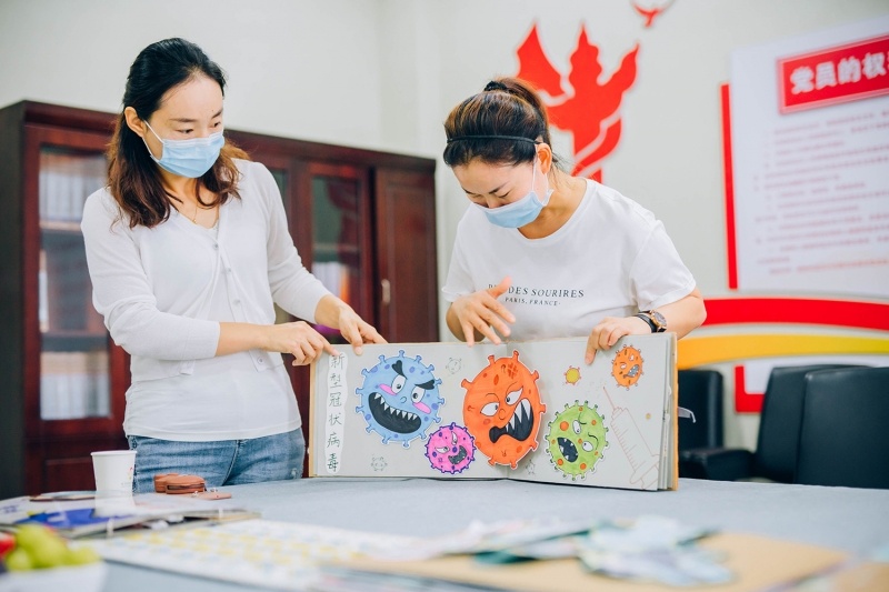 孩子們想要什么樣的開學(xué)第一課,疫情、災(zāi)情以什么樣的形式表現(xiàn)出來孩子更能理解呢?在馮園長的引領(lǐng)下,保教主任張春曉帶領(lǐng)老師們積極開展研討活動,以鄭州“暴雨+疫情”這個不尋常的假期為背景,從最初的幾十個主題,經(jīng)過多次研討,最終決定以立體繪本的形式呈現(xiàn),7本7個主題。讓孩子們正視疫情,珍愛生命,學(xué)會感恩,感受國家力量。