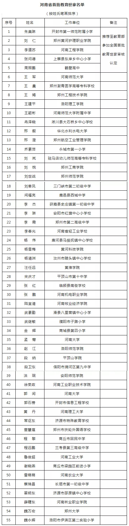 近日,經(jīng)過個人申報、單位推薦、專家評審等程序,河南省首批教育世家名單公布,55個教師家庭獲評河南省首批教育世家。