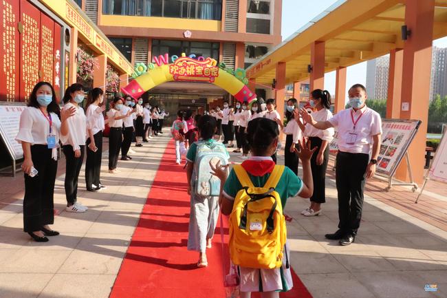 鄭州高新區(qū)科學(xué)大道第二小學(xué)開學(xué)第一天,一大早,學(xué)校鋪設(shè)紅地毯,學(xué)校校長、班主任老師早早地站在校門口迎接學(xué)子歸來??邕^拱門,走進(jìn)教室,學(xué)生又迎來新的驚喜:班主任老師為學(xué)生準(zhǔn)備了旺旺牛奶糖、棒棒糖,寓意新學(xué)期學(xué)習(xí)旺、身體旺,新學(xué)期一定棒!