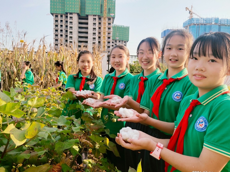 9月23日,正值豐收節(jié),孩子們來到開心農(nóng)場,共同體驗收獲之美。放眼農(nóng)場,水稻待收割,南瓜已成王;花生土里埋,棉花殼里藏;玉米金燦燦,辣椒紅丟丟······一派熱鬧的豐收景象?!耙荒晷燎谠谟谇?,糧不入屋不算收”,孩子們迫不及待的投入到緊張的勞動中,采棉花,摘南瓜,刨花生,割水稻······忙的不亦樂乎!辛勤的汗水在臉上流淌,豐收的喜悅在心頭蕩漾。