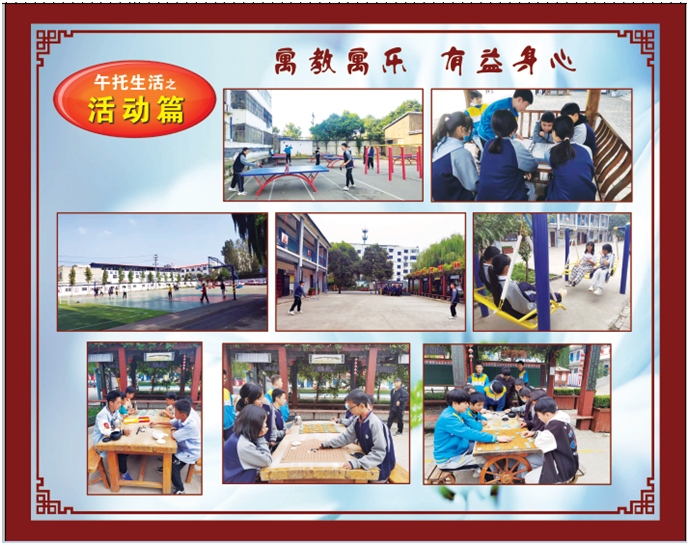 龍門一實(shí)校午托服務(wù)從午間用餐、午間活動(dòng)、午間休息、午間輔導(dǎo)四方面扎實(shí)推進(jìn)。為了讓學(xué)生午餐吃得飽、吃得好。學(xué)校自己加工餐食,以降低成本提高飯菜質(zhì)量,每天中午學(xué)校學(xué)生餐廳供應(yīng)四菜一湯及米飯面食,葷素搭配,飯后配水果,確保學(xué)生的營(yíng)養(yǎng)需求。午餐后,學(xué)校組織學(xué)生分組進(jìn)行午間活動(dòng),學(xué)校出資2萬余元添置體育、健身器材、購(gòu)買圍棋、象棋、跳棋等,讓學(xué)生在餐后有30分鐘的活動(dòng)、游戲、休閑時(shí)間,給學(xué)生提供了豐富多彩的飯后放松活動(dòng)。