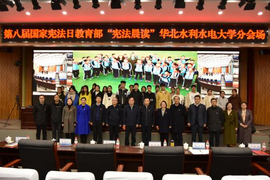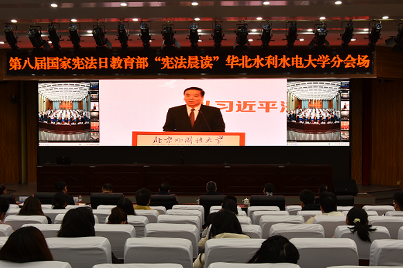 12月3日,為迎接第八個(gè)國(guó)家憲法日,深入學(xué)習(xí)貫徹習(xí)近平法治思想,進(jìn)一步普及憲法知識(shí)、弘揚(yáng)憲法精神、樹立憲法權(quán)威,教育部在北京舉辦教育系統(tǒng)“憲法晨讀”活動(dòng)?;顒?dòng)在全國(guó)31個(gè)省(區(qū)、市)和新疆生產(chǎn)建設(shè)兵團(tuán)設(shè)分會(huì)場(chǎng),近30萬(wàn)所學(xué)校的8000多萬(wàn)名師生通過網(wǎng)絡(luò)連接主會(huì)場(chǎng)同步參與。華北水利水電大學(xué)通過網(wǎng)絡(luò)在線參與“憲法晨讀”,校長(zhǎng)劉文鍇、紀(jì)委書記王如廠、社科處處長(zhǎng)魏新強(qiáng)、紀(jì)律檢查委員會(huì)綜合室主任韋樂余、黨委宣傳部副部長(zhǎng)韓玉潔等領(lǐng)導(dǎo)出席活動(dòng)。法學(xué)院領(lǐng)導(dǎo)班子、各學(xué)院師生代表、法治小衛(wèi)士志愿服務(wù)隊(duì)隊(duì)員參加活動(dòng)。