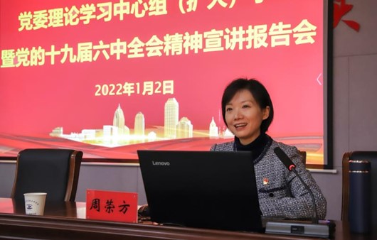 為深入學(xué)習(xí)貫徹黨的十九屆六中全會精神,引導(dǎo)廣大黨員干部群眾把思想和行動(dòng)統(tǒng)一到全會精神上來,按照省委高校工委安排部署,1月2日,省委宣講團(tuán)成員、鄭州大學(xué)馬克思主義學(xué)院副教授周榮方到焦作師范高等??茖W(xué)校,宣講黨的十九屆六中全會精神。校長田道敏出席會議,學(xué)校黨委理論學(xué)習(xí)中心組成員、全體中層干部等參加會議,集體學(xué)習(xí)聆聽專家報(bào)告。校黨委副書記、工會主席靳賢勝主持會議。