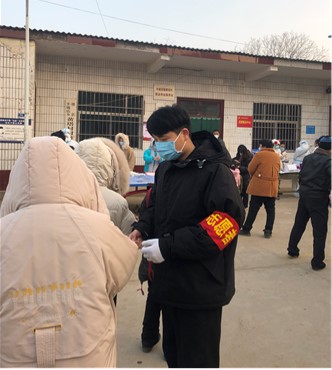 工商管理學(xué)院21級(jí)大數(shù)據(jù)與會(huì)計(jì)2班的明廣釗,是一個(gè)來(lái)自安陽(yáng)滑縣的男孩。1月8日,安陽(yáng)滑縣出現(xiàn)首例新冠肺炎感染病例,這個(gè)滑縣男孩挺身而出,奔赴滑縣半坡店鎮(zhèn)黃塔村的志愿者隊(duì)伍。他在志愿服務(wù)期間,指導(dǎo)群眾進(jìn)行手機(jī)預(yù)約及檢測(cè)核酸登記工作,協(xié)他們及時(shí)、有序完成核酸檢測(cè);在防疫卡點(diǎn)值班堅(jiān)守,檢查過(guò)往車輛行人的核酸檢測(cè)報(bào)告、行程碼及健康碼,防止外來(lái)人員進(jìn)入。