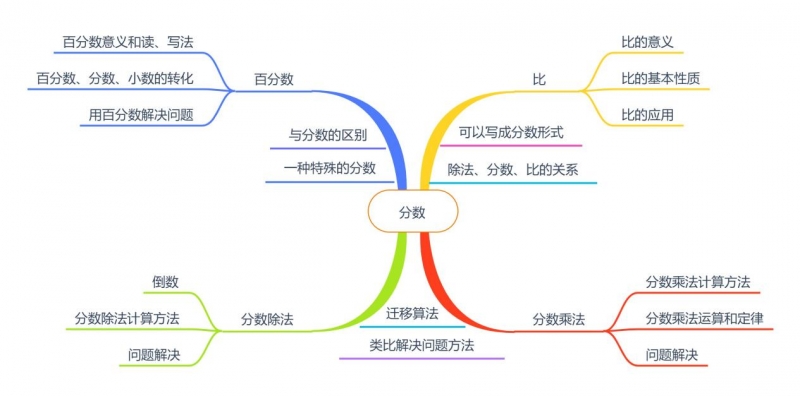 六年級上冊教材中,在數(shù)與代數(shù)方面安排了分數(shù)乘法、分數(shù)除法、比、百分數(shù)四個單元。在教學中,這四部分知識既相互獨立又密不可分,在教材總說明中特別強調(diào)溝通分數(shù)乘除法之間的聯(lián)系,幫助學生建立除法、分數(shù)、比、百分數(shù)知識的橋梁,加強知識間的整合與遷移。因此,教師在教學前不僅要明晰各單元教學的主要內(nèi)容,更要理清知識之間的聯(lián)系,把握全書總體系(圖1)。