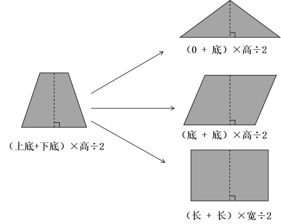 五年級上冊“多邊形的面積”計算,是以長方形面積計算為基礎,各圖形面積計算公式的推導都采用了“轉(zhuǎn)化”的方法。因此在單元教學中,一方面要抓住“轉(zhuǎn)化”這一主線,從不同的角度去思考,探索多樣的轉(zhuǎn)化方法,加強知識間的縱向聯(lián)系(圖2);另一方面突出知識間橫向?qū)Ρ?,在掌握長方形、平行四邊形、三角形、梯形面積公式后,將“如果只記一個公式,選擇記哪一個”作為任務,驅(qū)動學生思考圖形面積公式之間的聯(lián)系(圖3)。課中對學生多元的思考進行解釋梳理,促使學生對這些公式之間聯(lián)系的理解從單點結(jié)構(gòu)層次走向多點結(jié)構(gòu)層次,最終學生能夠感悟到這些公式都是相通的,從而進一步走向關聯(lián)結(jié)構(gòu)層次,讓孩子真正經(jīng)歷了深度學習。