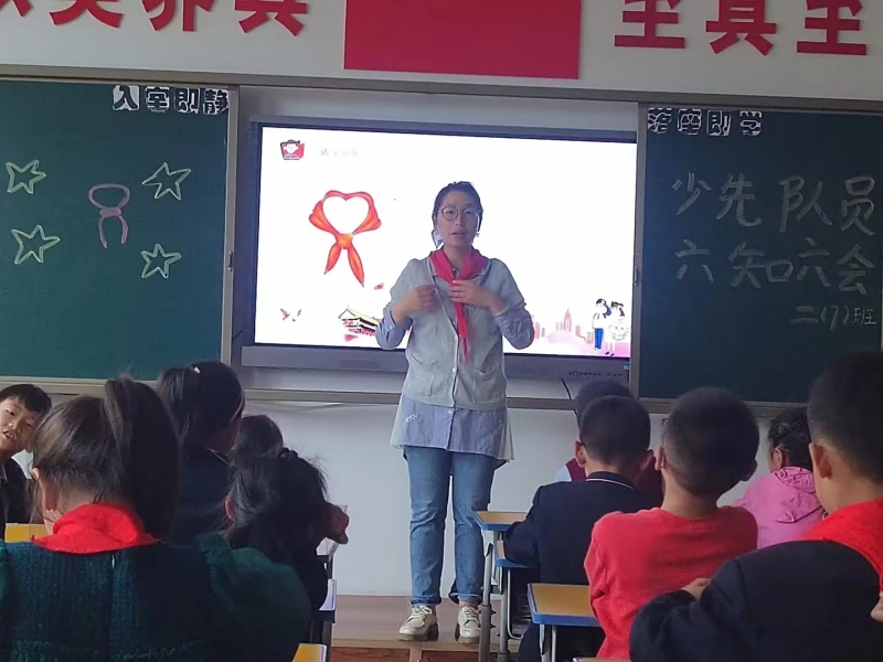 培訓(xùn)由學(xué)校少先隊(duì)大隊(duì)輔導(dǎo)員宋予鵬主講。各中隊(duì)輔導(dǎo)員老師向隊(duì)員介紹了少先隊(duì)隊(duì)名、隊(duì)旗、隊(duì)徽、隊(duì)禮以及相關(guān)標(biāo)志等;然后,帶領(lǐng)大家觀看視頻《致敬紅領(lǐng)巾》,對(duì)少先隊(duì)隊(duì)史進(jìn)行講解,并對(duì)少先隊(duì)“六知六會(huì)一做”進(jìn)行全面解析,使大家知悉少先隊(duì)員必須會(huì)佩戴紅領(lǐng)巾、會(huì)敬隊(duì)禮、會(huì)呼號(hào)、會(huì)唱隊(duì)歌、會(huì)背入隊(duì)隊(duì)詞、會(huì)寫《入隊(duì)申請(qǐng)書》,入隊(duì)之前還應(yīng)為人民做一件好事。