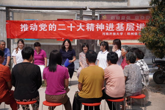 6月25日到29日,河南開放大學(xué)馬克思主義學(xué)院、文心書院、新鄉(xiāng)市平原示范區(qū)科技和工業(yè)信息化局聯(lián)合開展思政課主題學(xué)習(xí)實(shí)踐教學(xué)活動(dòng)暨“三下鄉(xiāng)”社會(huì)實(shí)踐活動(dòng),馬院教師鄧凌娟、文心書院教師鄭帥男、平原示范區(qū)科技和工業(yè)信息化局陳艷飛帶領(lǐng)大學(xué)生志愿者服務(wù)隊(duì)赴新鄉(xiāng)市平原示范區(qū)吳廠村,采取村民喜聞樂見的方式宣傳黨的二十大精神,讓二十大精神“飛入尋常百姓家”,引導(dǎo)和幫助廣大青年學(xué)生在與現(xiàn)實(shí)相結(jié)合的“大思政課”中“受教育、長才干、作貢獻(xiàn)”,引領(lǐng)學(xué)生立志做有理想、敢擔(dān)當(dāng)、能吃苦、肯奮斗的新時(shí)代好青年。