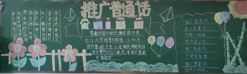 除此之外,學(xué)校還積極開展主題鮮明、內(nèi)容豐富的班會活動。通過老師的講解,同學(xué)們更深入、更系統(tǒng)地了解了什么是普通話;有些班級還以朗讀詩歌、說繞口令等方式,激發(fā)同學(xué)們說普通話的熱情,教育學(xué)生要積極主動地堅持講普通話,激發(fā)學(xué)生互相督促、互相鼓勵,養(yǎng)成講普通話的習(xí)慣。同時,各班還開展板報亮相、手抄報評選活動,孩子們從版面、字體、圖文等方面進行了精心設(shè)計。