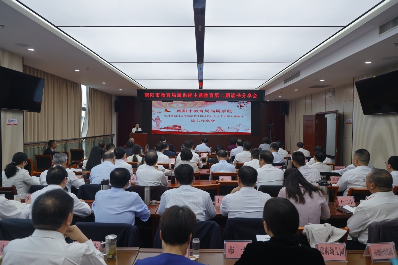 10月31日下午,南陽(yáng)市教育局黨組召開(kāi)局屬系統(tǒng)主題教育第二場(chǎng)讀書(shū)分享會(huì),持續(xù)推進(jìn)教育系統(tǒng)主題教育走深走實(shí),激勵(lì)廣大黨員干部在讀書(shū)學(xué)習(xí)中凝聚成長(zhǎng)力量,推進(jìn)南陽(yáng)教育事業(yè)高質(zhì)量發(fā)展。河南省委主題教育巡回督導(dǎo)組副組長(zhǎng)魏世春等蒞臨指導(dǎo),南陽(yáng)市政協(xié)副主席、市教育局黨組書(shū)記、局長(zhǎng)楊文普出席會(huì)議并講話,市教育局領(lǐng)導(dǎo)班子成員、市委教育工委委員、局屬單位主要負(fù)責(zé)同志、局屬學(xué)校黨政正職、機(jī)關(guān)全體同志參加會(huì)議。