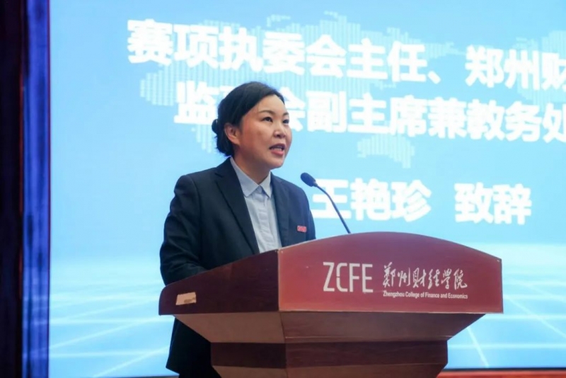 賽項執(zhí)行委員會主任、鄭州財經(jīng)學(xué)院監(jiān)事會副主席兼教務(wù)處處長王艷珍致辭