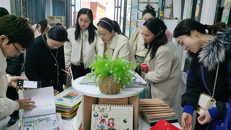 各校的作業(yè)靜態(tài)展示各具特色,引得參會的教師駐足欣賞,嘖嘖稱贊。