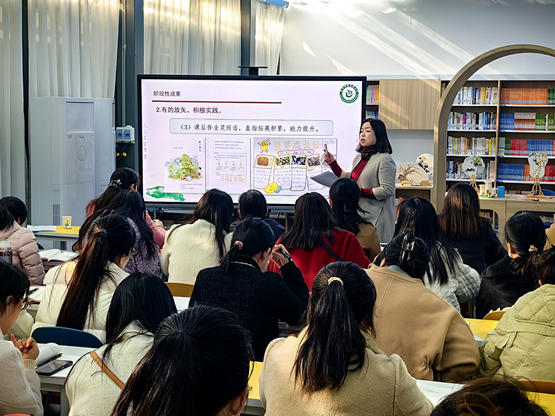 東環(huán)小學(xué)劉利霞副校長分享了東環(huán)小學(xué)特色實踐作業(yè)等方面的優(yōu)秀經(jīng)驗。東環(huán)小學(xué)的“日記”作業(yè)匠心獨具,從“漂流日記”到“時光日記”,從紙質(zhì)日記到電子日記,記錄著孩子們成長的點點滴滴。利用學(xué)校種植園資源,開展“落地生花”語文跨學(xué)科學(xué)習(xí),學(xué)生在收花生、品花生、議花生、悟花生中獲得內(nèi)心的成長。