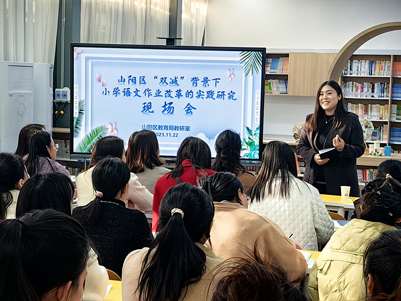 冬日暖陽萬物藏,小雪沉香悅時光。為進(jìn)一步深入落實“雙減”政策,深入推進(jìn)小學(xué)語文作業(yè)改革,促進(jìn)學(xué)生核心綜合素養(yǎng)發(fā)展,2023年11月22日,在焦作市山陽區(qū)教育局教研室的組織下,在山陽區(qū)塔南路小學(xué)圖書館舉行了“雙減”背景下小學(xué)語文作業(yè)改革實踐研究現(xiàn)場會。山陽區(qū)教育局教研室副主任楊華、教研員吳琳老師蒞臨會議,來自全區(qū)各小學(xué)的60余名業(yè)務(wù)領(lǐng)導(dǎo)和語文骨干教師參加了此次現(xiàn)場會。
