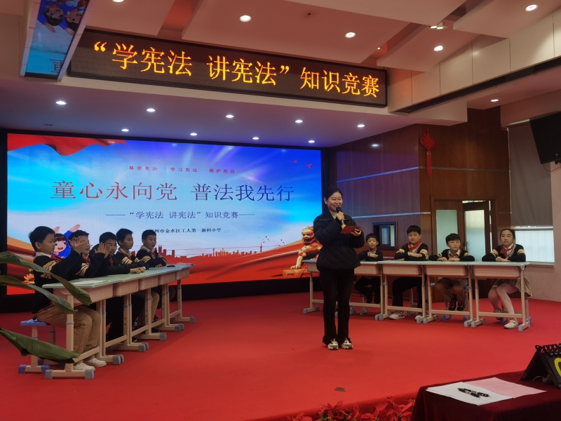 為了加強(qiáng)憲法宣傳教育,進(jìn)一步在青少年學(xué)生中普及憲法知識(shí)、弘揚(yáng)憲法精神、樹立憲法權(quán)威,構(gòu)建和諧校園、營造良好的法治環(huán)境。2023年12月6日,鄭州市金水區(qū)工人第一新村小學(xué)舉辦了“童心永向黨 普法我先行”憲法知識(shí)競賽活動(dòng)。