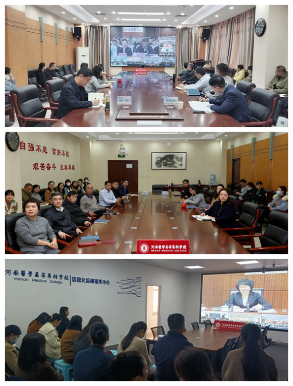 12月5日,教育部、人力資源和社會(huì)保障部召開2024屆全國普通高校畢業(yè)生就業(yè)創(chuàng)業(yè)工作視頻會(huì)議,河南醫(yī)學(xué)高等專科學(xué)校在圖文信息中心第一會(huì)議室、信息化運(yùn)維指揮中心設(shè)立分會(huì)場(chǎng)。校長孫韜,校黨委副書記、工會(huì)主席李鵬濤,各學(xué)院黨總支書記、院長,就業(yè)專員,全體畢業(yè)班輔導(dǎo)員,大學(xué)生就業(yè)創(chuàng)業(yè)指導(dǎo)中心相關(guān)人員收聽收看視頻會(huì)議。