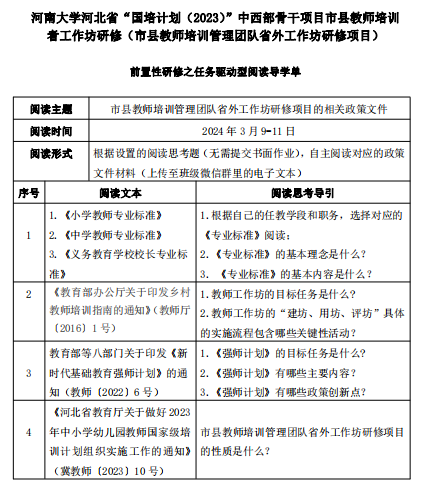 河南大學(xué)教育學(xué)部于2024年2月27日至3月21日,順利完成了河北省“國培計(jì)劃(2023)”——中西部骨干項(xiàng)目市縣教師培訓(xùn)者工作坊研修(市縣教師培訓(xùn)管理團(tuán)隊(duì)省外工作坊研修項(xiàng)目)三期的300名參訓(xùn)教師的集中培訓(xùn)任務(wù)。