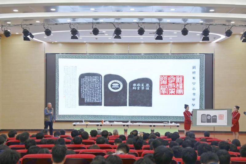 中國(guó)書協(xié)會(huì)員、河南省中國(guó)書畫家協(xié)會(huì)副主席韓湘人老師,以二十余年編著《王寵書法全集》(四卷本),向師生宣講《王寵暨王寵書法》。國(guó)家一級(jí)演員,河南省曲協(xié)副主席、曲藝牡丹獎(jiǎng)表演獎(jiǎng)獲得者王國(guó)軍老師為師生們表演了精彩的河南墜子藝術(shù)。中國(guó)書協(xié)會(huì)員、鄭州市金石文化研究會(huì)首任執(zhí)行會(huì)長(zhǎng)王秋人老師帶來(lái)了《中國(guó)金石傳拓藝術(shù)欣賞》并現(xiàn)場(chǎng)演繹、教學(xué)。