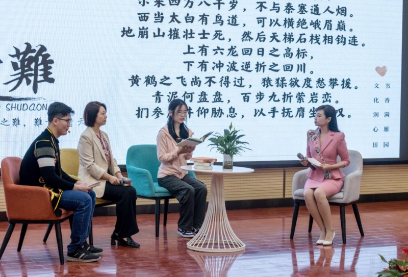 學(xué)校優(yōu)秀教師尹亞南、學(xué)生柳杏子、烏茲別克斯坦留學(xué)生阿里分別就《中華典籍里的優(yōu)秀傳統(tǒng)文化》分別進(jìn)入了誦讀和訪談。學(xué)生們展示了情景誦讀《少年中國(guó)說》,師生們激情澎湃的朗誦,贏得了現(xiàn)場(chǎng)觀眾們的陣陣掌聲。最后,河南省高校圖工委高職高專分委會(huì)副主任梁國(guó)華最后進(jìn)行了總結(jié)點(diǎn)評(píng)。
