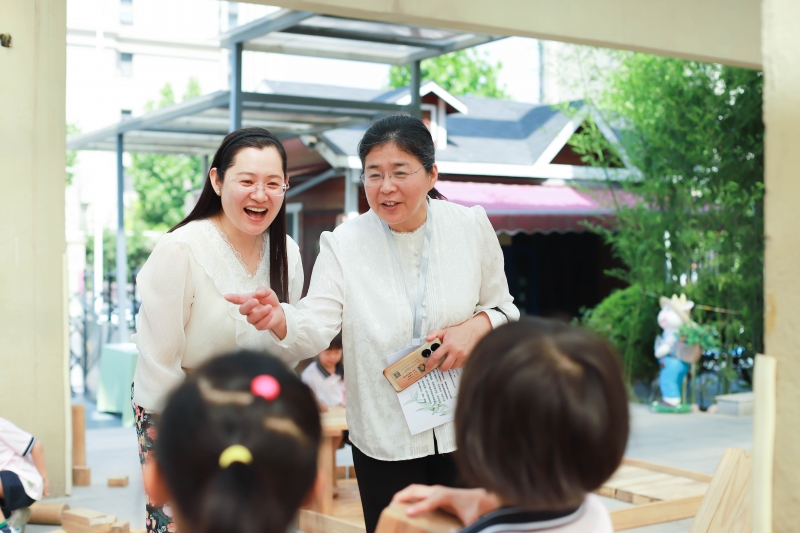 專家和各位園長(zhǎng)們跟隨孩子們的腳步,走進(jìn)幼兒戶外自主游戲,深入體驗(yàn)孩子們的“真”游戲。幼兒在游戲中體現(xiàn)出的自主、專注、探索、嘗試、堅(jiān)持、不放棄的學(xué)習(xí)品質(zhì),感染著在場(chǎng)觀摩的每一位幼教同仁,大家紛紛駐足觀察、交流,在觀察中傾聽幼兒,親身感受自主游戲帶給幼兒的快樂,更深層領(lǐng)悟自主游戲的獨(dú)特價(jià)值。