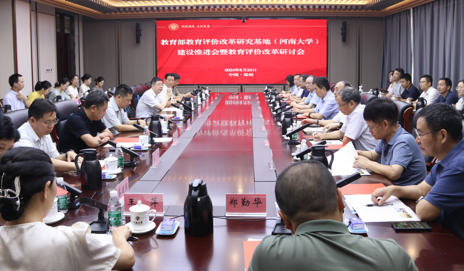 8月24日,教育部教育評價改革研究基地(河南大學(xué))建設(shè)推進(jìn)會暨教育評價改革研討會在河南大學(xué)鄭州校區(qū)召開。河南省教育廳黨組成員,河南省教育考試院黨委書記、院長董學(xué)勝,河南省教育廳社會科學(xué)研究與語言文字應(yīng)用管理處處長韓冰,河南省教育科學(xué)規(guī)劃與評估院副院長李新,河南大學(xué)副校長張禮剛,河南大學(xué)教育學(xué)部部長劉志軍出席會議。北京理工大學(xué)教授王戰(zhàn)軍、華中師范大學(xué)教授周洪宇、中國教育科學(xué)研究院研究員張寧娟等,以及河南大學(xué)研究基地團(tuán)隊成員參加會議。河南大學(xué)教育學(xué)部副部長王萍、河南大學(xué)人文社科研究院院長蔡建東、河南大學(xué)歐亞國際學(xué)院院長王振存主持會議。