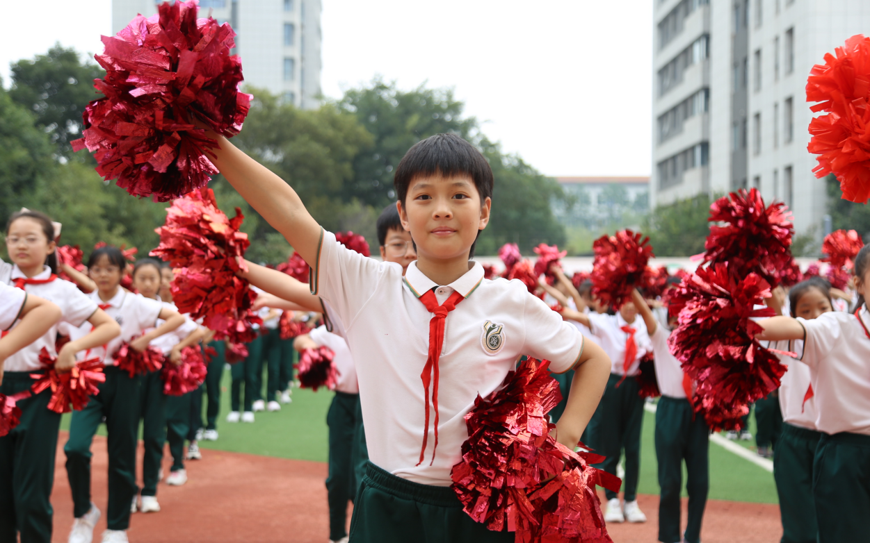 文源小學(xué)將紅色教育與體育課程有機(jī)結(jié)合,一套紅色主題的啦啦操《歌唱祖國(guó)》傳遞紅色能量,錘煉體育品格,伴著9月的秋日暖陽(yáng),千名學(xué)生以飽滿的姿態(tài),有力的動(dòng)作,在昂揚(yáng)向上的音樂(lè)聲中,呈現(xiàn)了一套飽含愛(ài)國(guó)熱情的啦啦操。在紅色信念的召喚下,9月底如期召開(kāi)的體質(zhì)達(dá)標(biāo)測(cè)試也在有序進(jìn)行,考驗(yàn)?zāi)土Φ囊环昼娞K,是力量的角逐,是技巧的比拼;見(jiàn)證爆發(fā)力的50米跑,是速度的詮釋,是奔跑的魅力……孩子們充滿活力的舞姿和運(yùn)動(dòng)的身影,表達(dá)著生命的激情與力量,更展現(xiàn)著對(duì)祖國(guó)母親的熱愛(ài)和敬意,忠誠(chéng)與擔(dān)當(dāng)。這一刻,紅色點(diǎn)燃了整個(gè)校園!