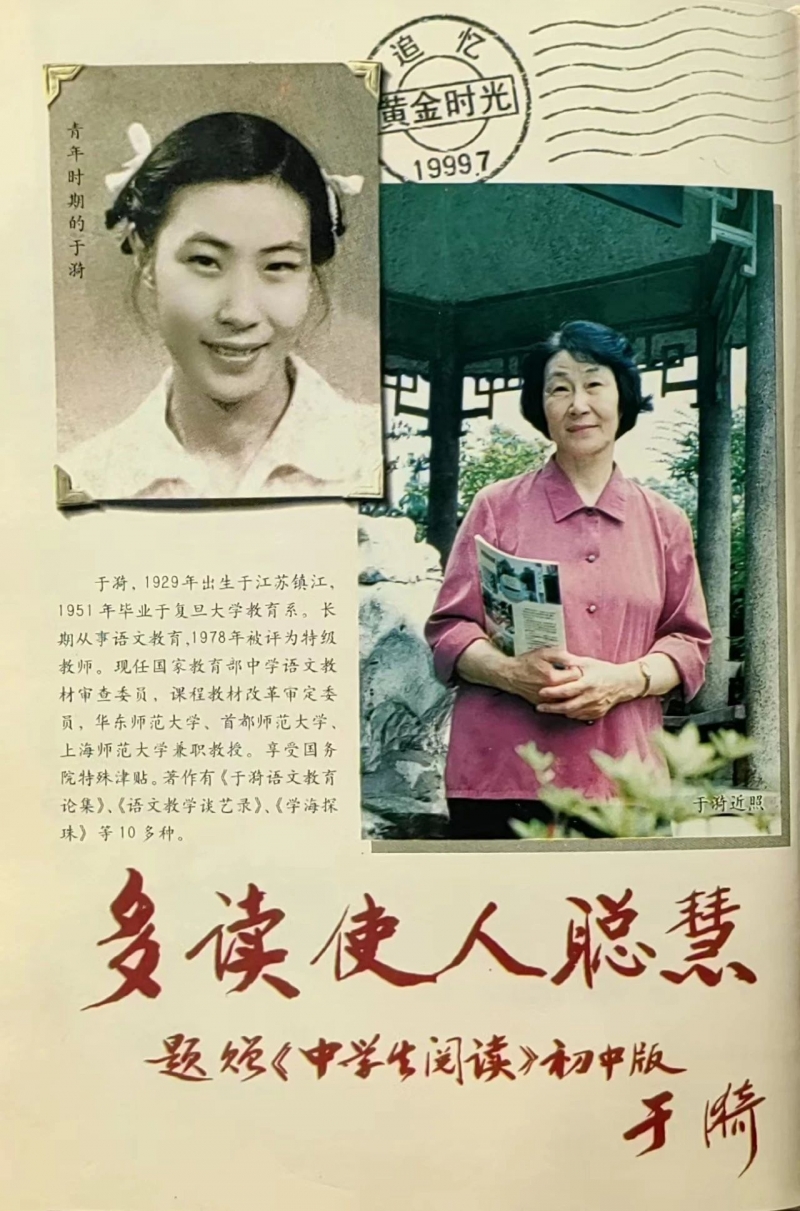 圖四:當(dāng)期《中學(xué)生閱讀》(初中版)封二配發(fā)的于漪老師的照片、題詞和簡介