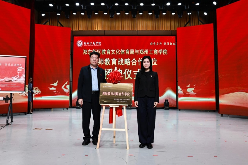 為進(jìn)一步深化產(chǎn)教融合、構(gòu)建開(kāi)放合作的教師教育平臺(tái),啟動(dòng)儀式上,鄭州市鄭東新區(qū)教育文化體育局與鄭州工商學(xué)院舉行了教師教育戰(zhàn)略合作單位的揭牌儀式。張利剛和王提共同上臺(tái)揭牌。這標(biāo)志著雙方將在教師教育領(lǐng)域展開(kāi)深度合作,共同培養(yǎng)高素質(zhì)專業(yè)化創(chuàng)新型教師。