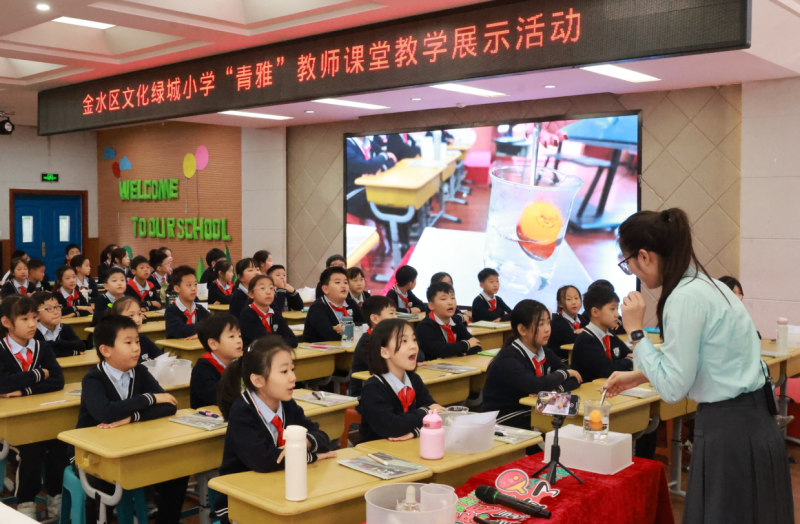 在觀課環(huán)節(jié),金水區(qū)文化綠城小學(xué)語文、數(shù)學(xué)、英語、科學(xué)、音樂、美術(shù)等學(xué)科的骨干教師精心備課,基于對學(xué)科本質(zhì)和學(xué)科核心素養(yǎng)的深入理解,基于對課標(biāo)、教材和學(xué)生的深入研究,充分展現(xiàn)了12節(jié)別具匠心的“文綠雅美課堂”。