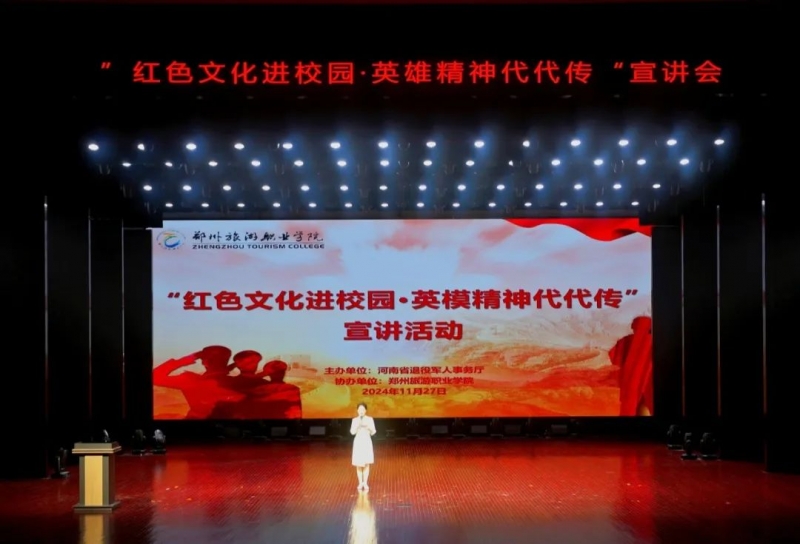 為深入貫徹落實黨的二十屆三中全會精神,推動鄭州旅游職業(yè)學(xué)院傳承紅色基因和黨建引領(lǐng)工作走深走實,引導(dǎo)青年學(xué)子攜筆從戎。11月27日下午,鄭州旅游職業(yè)學(xué)院特邀河南省退役軍人事務(wù)廳宣講團(tuán)走進(jìn)校園,在藝術(shù)中心舉辦了“紅色文化進(jìn)校園·英模精神代代傳”宣講活動。