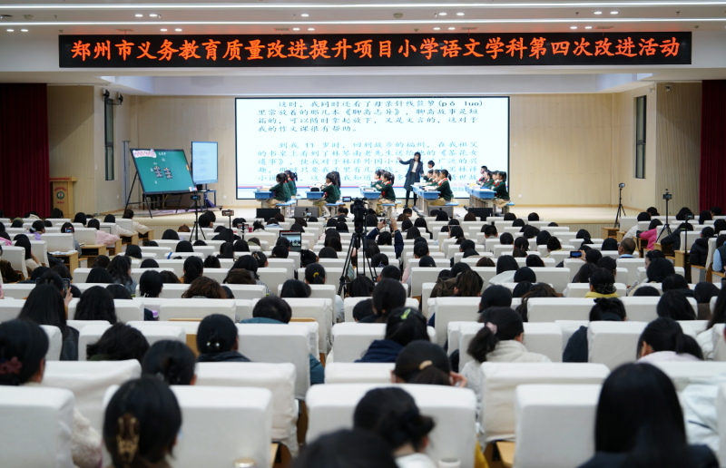 鄭州市義務(wù)教育質(zhì)量改進提升項目小學(xué)語文學(xué)科第四次改進活動于12月3日至4日在金水區(qū)農(nóng)科路小學(xué)國基校區(qū)舉行。北京教科院基教研中心小學(xué)語文教研員李英杰、北京市海淀區(qū)實驗小學(xué)教師于明,北京市西城區(qū)康樂里小學(xué)教師范繼涵、趙欣,鄭州市基礎(chǔ)教育教學(xué)研究室語文教研員余昆侖,金水區(qū)教育發(fā)展研究中心副主任趙楊,金水區(qū)教育發(fā)展研究中心小學(xué)語文教研員陳紅霞、柳莉萍、張謙,金水區(qū)農(nóng)科路小學(xué)教育集團黨委書記、校長孫永亮,各區(qū)縣(市)小學(xué)語文教研員、部分小學(xué)語文教師,以及金水區(qū)“閱讀力”提升工作坊成員、金水區(qū)學(xué)科中心組、青年中心組成員共計500余人參加本次活動。此次活動為期兩天,主要圍繞課例研討、說課交流、專家引領(lǐng)和工作坊成員沙龍研討四項內(nèi)容展開。通過活動持續(xù)提升鄭州市小學(xué)語文教師的教育教學(xué)能力和專業(yè)發(fā)展水平,深化教師對“六步備課模型”“欣賞評價能力進階模型”的理解和實踐。