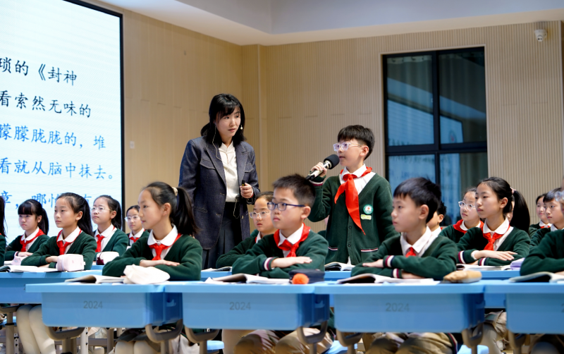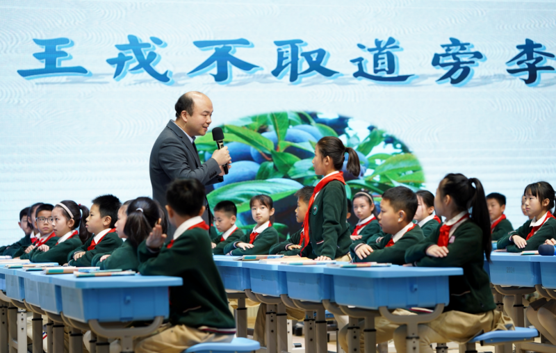 在活動第一階段,北京市海淀區(qū)實驗小學(xué)教師于明和北京市西城區(qū)康樂里小學(xué)教師范繼涵分別執(zhí)教了統(tǒng)編教材語文四年級上冊《王戎不取道旁李》和五年級上冊《憶讀書》。于明依據(jù)文言文特點,通過朗讀、想象等多種方式,引領(lǐng)學(xué)生讀通、讀懂、讀活文言故事,清晰呈現(xiàn)了先學(xué)后教、進階提升的學(xué)習(xí)過程。范繼涵緊扣“選”與“法”,引導(dǎo)學(xué)生通過自主、合作學(xué)習(xí),梳理“好書標(biāo)準(zhǔn)”和“讀書之法”,并結(jié)合自己的讀書經(jīng)歷回看作者的讀書觀,在研讀、梳理和整合中,學(xué)生逐步形成了自己對讀書的思考。