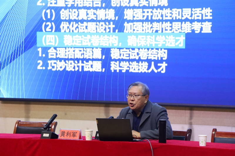 活動上,鄭州市基礎(chǔ)教育教學(xué)研究室英語教研員黃利軍作了題為《基于高考評價體系與核心素養(yǎng)的高考英語命題分析與備考策略》的專題講座。他聚焦高考英語新課標(biāo)卷命題改革趨勢、英語高考評價體系與核心素養(yǎng)、英語命題趨向及命題特點、英語閱讀理解和寫作教學(xué)等方面,結(jié)合歷年高考數(shù)據(jù),針對各個考試題型的教法學(xué)法,提出了許多切實可行性的備考建議,幫助教師準(zhǔn)確把握高考備考方向,優(yōu)化英語備考教學(xué)策略,提升對英語備考的針對性和實效性。