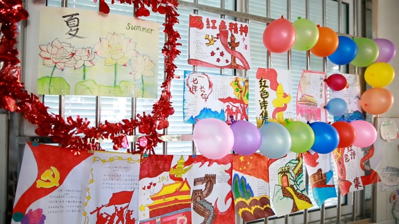 活動(dòng)當(dāng)天,校園內(nèi)熱鬧非凡。各班級(jí)精心布置的展位成為了展示孩子們閱讀成果的重要舞臺(tái)。這些展位風(fēng)格各異,有的充滿童真童趣,有的彌漫著濃濃的書香,還有的色彩繽紛絢爛,氤氳著古典氣息。五彩氣球輕盈搖曳,精美作品錯(cuò)落懸掛,創(chuàng)意書簽盡顯傳統(tǒng)文化之美,紅色主題作品則溢滿了愛國熱忱。裝訂成冊的閱讀記錄卡,記錄著孩子們從入學(xué)至今的讀書收獲;圖文并茂的自制繪本,帶領(lǐng)孩子們從閱讀走向創(chuàng)作。各式各樣的連環(huán)畫、折疊書、立體書,以及成長記錄手冊、周記、習(xí)作集等,讓人目不暇接,簡直是一場視覺盛宴。