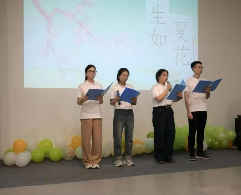 活動現場,朗讀者生動演繹了多首經典與原創(chuàng)詩歌作品?!段矣檬裁床拍芰糇∧恪穫鬟f出對情感的珍視與思索;李大釗筆下的《青春》展現出青年的壯志豪情;勸學經典《送東陽馬生序》勉勵青年人珍惜良好的讀書環(huán)境,勤勉治學;泰戈爾的《生如夏花》詮釋生命的絢爛;朗《致郁》《獨木》《來日并不方長》從不同角度抒發(fā)內心感悟,引發(fā)聽者共鳴;童話節(jié)選《小王子》勾勒出純真的童話世界。集體朗誦《理想》描繪了對未來的美好憧憬,激勵大家奮力前行,矢志追夢。