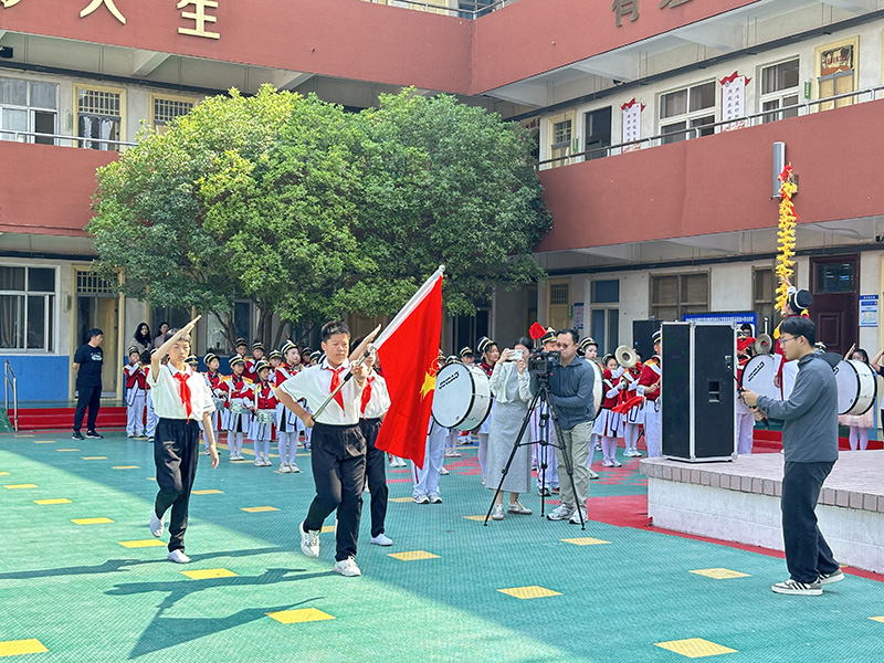 活動現(xiàn)場,伴隨著鼓號隊鏗鏘的《出旗曲》劃破長空,全體師生面向少先隊旗莊嚴行禮。出旗手邁著矯健的步伐,新隊員的眼中寫滿了期待與自豪。在《中國少年先鋒隊隊歌》的激昂旋律中,少先隊員的歌聲穿透云霄,新隊員們挺直脊梁,用稚嫩卻堅定的童聲唱響對組織的忠誠。