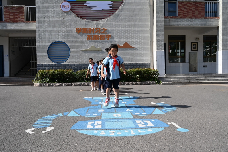 數(shù)據(jù)印證創(chuàng)新成效顯著。地面彩繪區(qū)日均使用率達(dá)92%,學(xué)生傳統(tǒng)文化認(rèn)知測試平均分提升15%。10—30分鐘小課間里,學(xué)生自由選擇彩繪項(xiàng)目,或于“跳房子”“跳節(jié)氣”區(qū)域歡快跳躍、誦讀口訣,或在“歡樂GO”場地手腳并用、釋放活力,歡聲笑語充盈校園。副校長李長貴說:“當(dāng)每一寸空間都成為育人載體,運(yùn)動(dòng)便融入了學(xué)生的生命基因。”