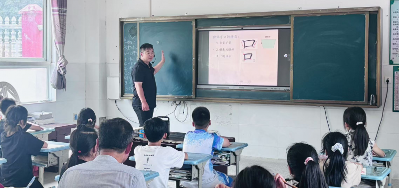隨后,送教團隊帶來書法、美術(shù)、英語、數(shù)學(xué)等公開課與微講座,展現(xiàn)了工作室主持人先進的教學(xué)理念、靈活的教學(xué)方法和扎實的教學(xué)功底。書法課上,尚海娟美術(shù)工作室核心成員、玉都實驗學(xué)校教師王俊基講授《多變的口》,以生動有趣的故事作為導(dǎo)入,引導(dǎo)學(xué)生觀察“口”字在不同漢字中的形態(tài)變化,并通過示范書寫、筆畫分解、學(xué)生臨摹等環(huán)節(jié),指導(dǎo)學(xué)生循序漸進地掌握書寫技巧。