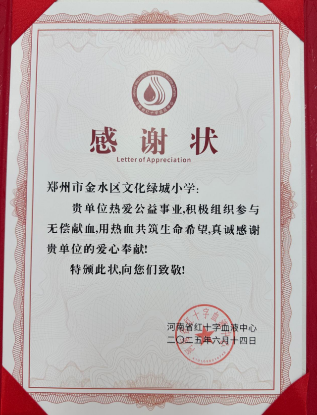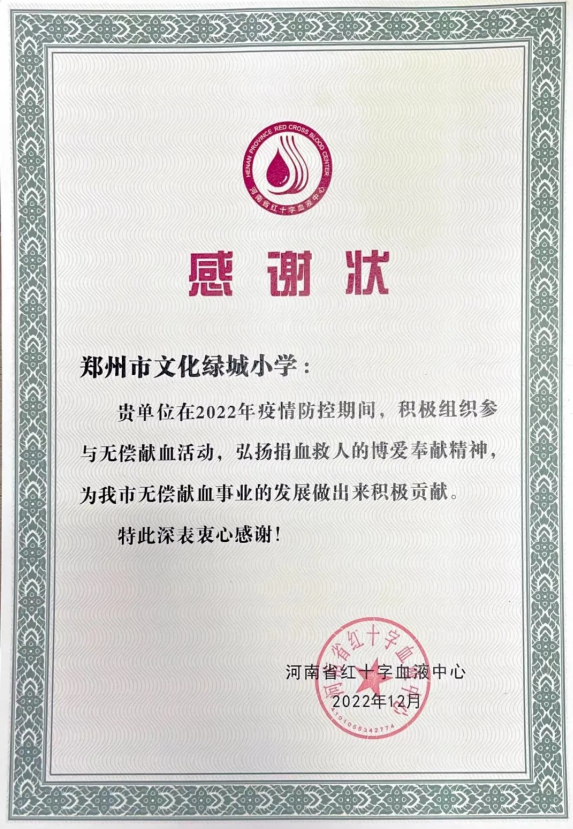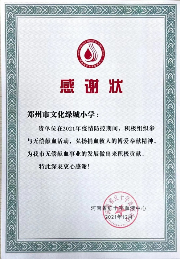 據(jù)統(tǒng)計(jì),自2020年組建獻(xiàn)血隊(duì)伍以來(lái),該校已連續(xù)五年成功組織集體獻(xiàn)血活動(dòng)18次,累計(jì)報(bào)名375人次,共捐獻(xiàn)全血37700毫升、單采成分血142個(gè)單位。教師們的無(wú)私奉獻(xiàn),生動(dòng)踐行了學(xué)校“立雅求美,綻放幸福”的辦學(xué)理念,充分展現(xiàn)了新時(shí)代教育工作者立德樹(shù)人、服務(wù)社會(huì)、勇于擔(dān)當(dāng)?shù)某绺咂犯?。學(xué)校也因此榮獲“鄭州市無(wú)償獻(xiàn)血優(yōu)秀團(tuán)隊(duì)”“先進(jìn)單位”等榮譽(yù)稱號(hào),多次收到河南省紅十字血液中心的感謝信。