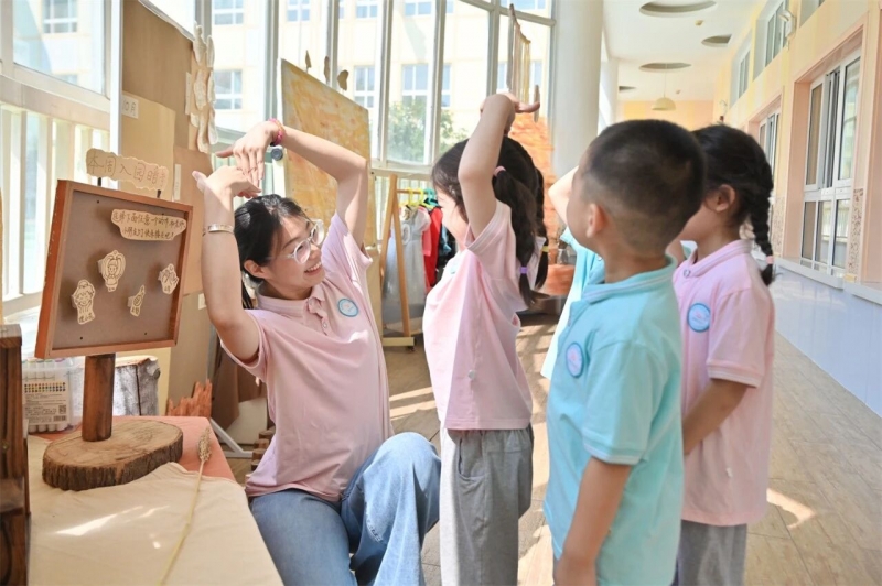 孩子們用小手編織著秋天的風(fēng)鈴。形式多樣的風(fēng)鈴里,松果沉甸甸的、貝殼泛著珠光、木片輕輕碰撞、樹葉沙沙作響。他們系好每一根線,把“愿望”和“未來”藏進(jìn)這些自然的饋贈(zèng)中。每當(dāng)微風(fēng)拂過,便響起細(xì)碎而清澈的聲音。