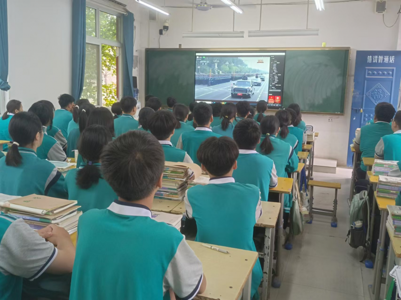 當日上午,隨著九三閱兵式在天安門廣場正式拉開帷幕,原陽縣第三初級中學的師生端坐在教室,身著整齊服裝,目光專注地看向屏幕。當護旗方隊邁著鏗鏘有力的步伐護衛(wèi)國旗入場,當威武的受閱部隊以昂揚姿態(tài)依次通過天安門廣場,當先進的國防裝備展現(xiàn)國家實力,教室里多次響起熱烈掌聲,自豪感與使命感在師生們的心中激蕩。