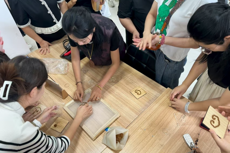 伴隨著現場的花香四溢,公共教學部教師房曉露帶領大家制作非遺制香片。非遺不僅是先輩通過日常生活的運用而留存到現代的文化財富,還是一個國家和民族歷史文化成就的重要標志,是優(yōu)秀傳統文化的重要組成部分。房曉露老師為教師們講解了龍圖騰的歷史淵源、象征意義以及香文化的起源與發(fā)展,在制作龍形香片的過程中,教師們親身感受了傳統香道技藝的精妙,增強了對中華優(yōu)秀傳統文化的認同感和自豪感,收獲頗豐。