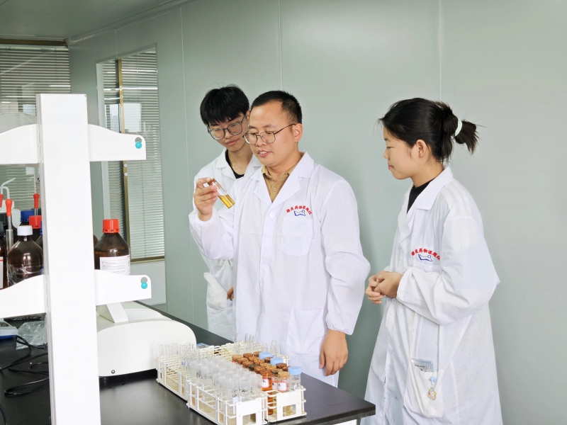 食品與藥學(xué)院舒朋華博士指導(dǎo)學(xué)生開展實(shí)驗(yàn)